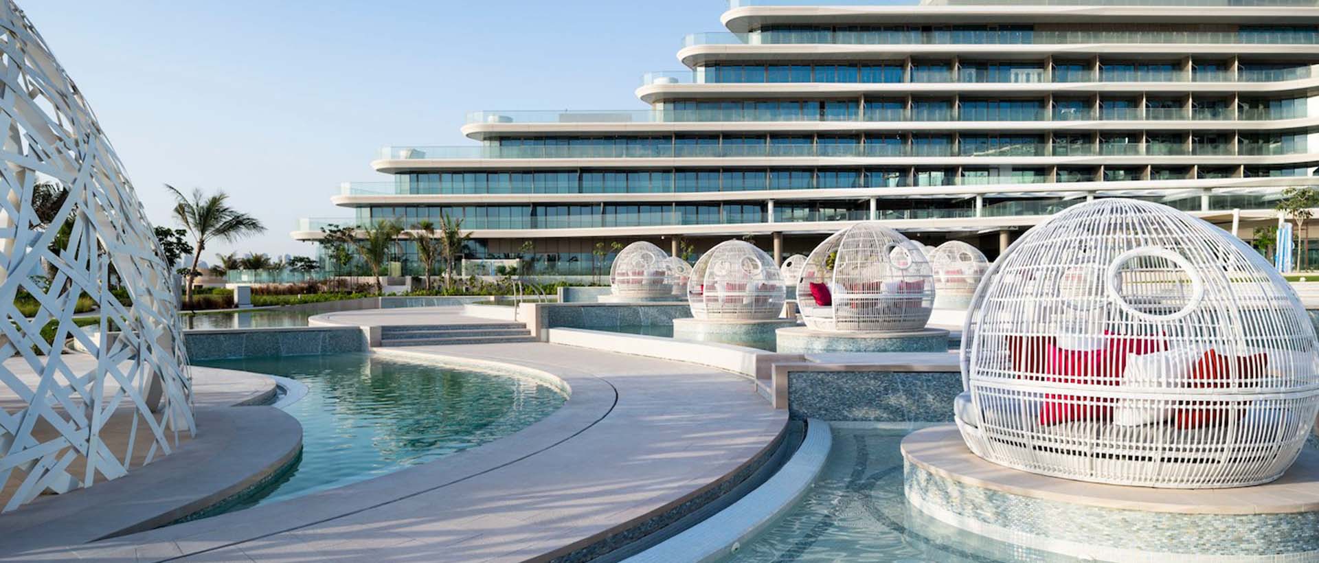 Футуристический дизайн W Dubai - The Palm сочетается с натуральными элементами и изогнутыми формами, которые подчеркивают легкость и динамичную атмосферу бренда. Известный высококлассной развлекательной программой, отель регулярно проводит модные и музыкальные мероприятия.